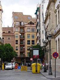 La calle Diego de León es una pequeña vía que une la Plaza de las Tendillas con la calle Alfonso XIII, tiene como afluente en su parte derecha la calle Victoriano Rivera y la plaza Mármol de Bañuelos.