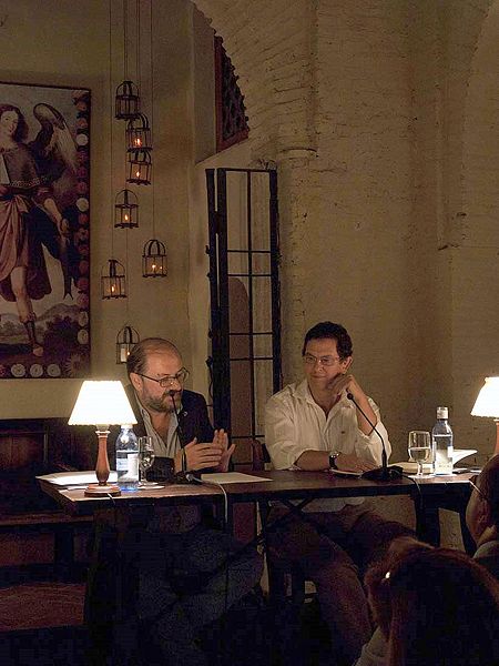 Antonio Varo y Alberto Díaz-Villaseñor en la presentación de su poemario Nuevo Lapidario. Ermita de la Candelaria |